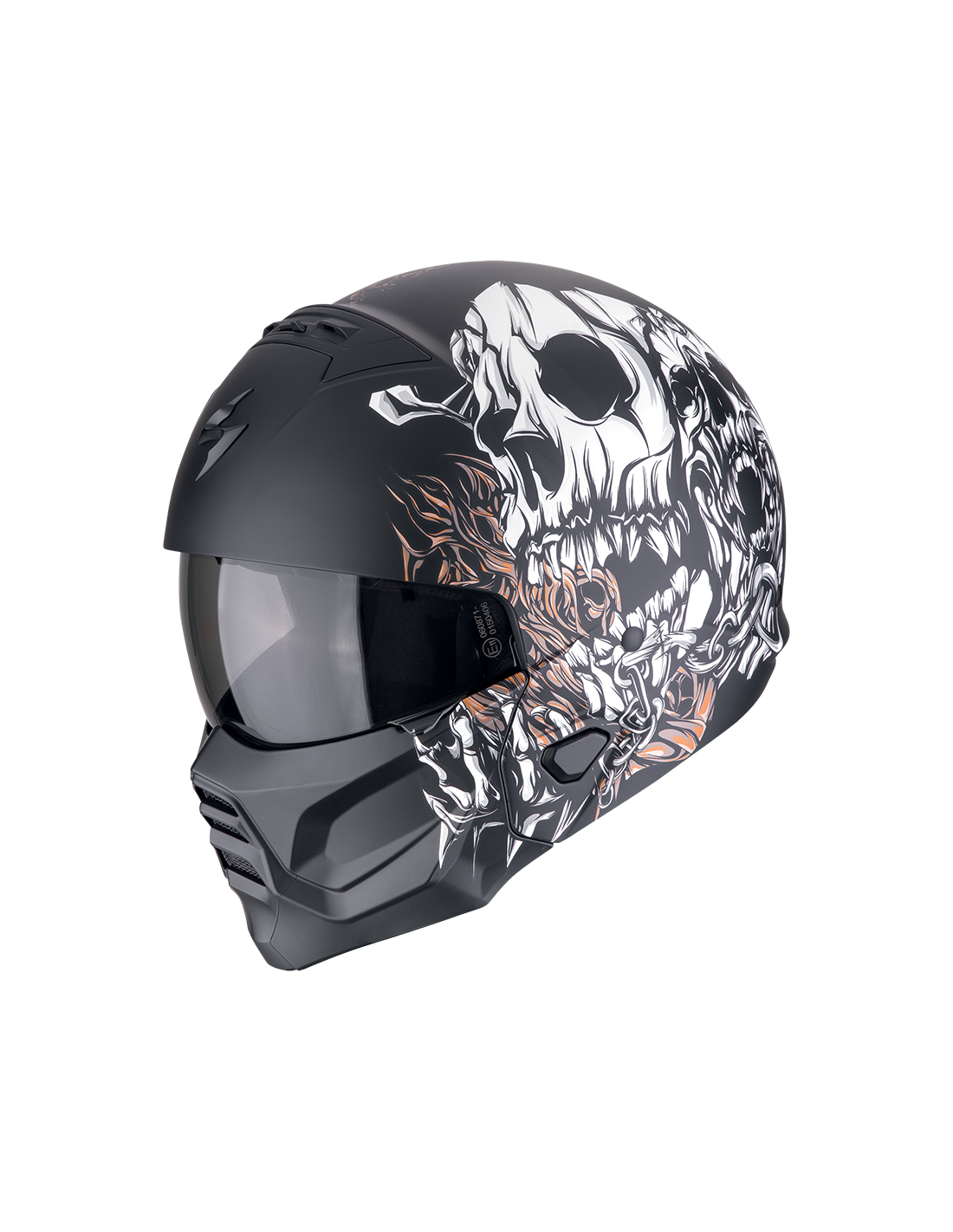 El nuevo diseño de 2 piezas permite al motorista el máximo flujo de aire al convertirse en un casco de estilo abierto cuando es necesario.