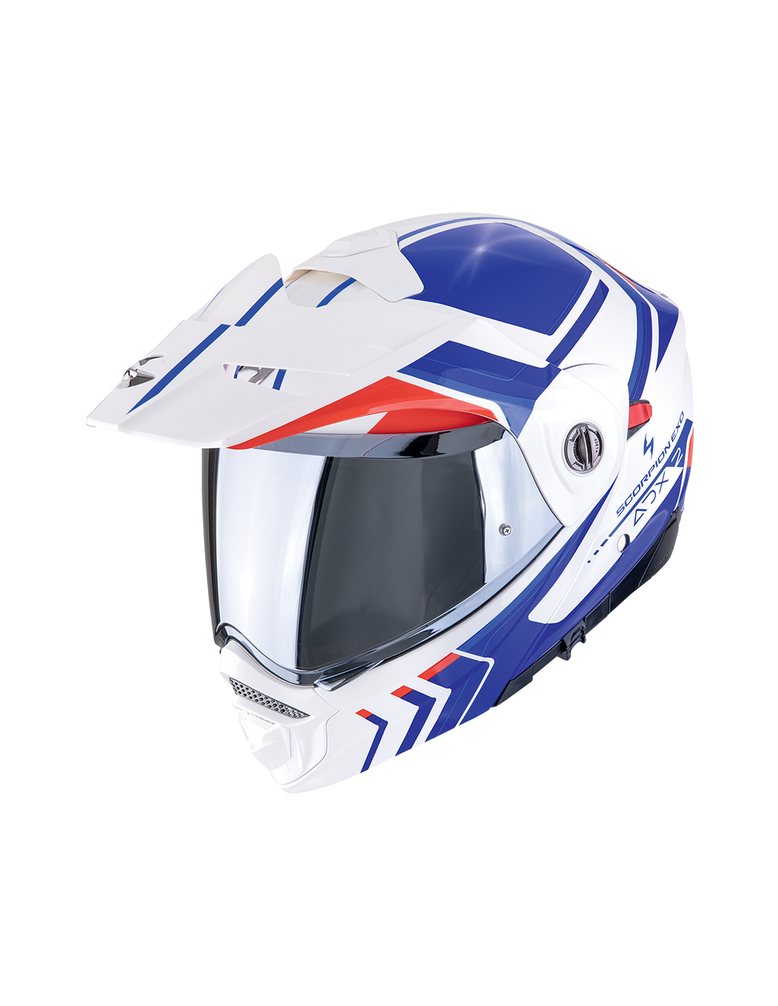 El casco modular hiperflexible para aventura/diversos deportes le ofrece todas las ventajas, ya que puede abatir cómodamente la mentonera para un breve descanso, o cambiar la pantalla facial por unas gafas para una experiencia seria en moto de cross y también, simplemente, retirar la visera de pico externa para un propósito de turismo más aerodinámico.