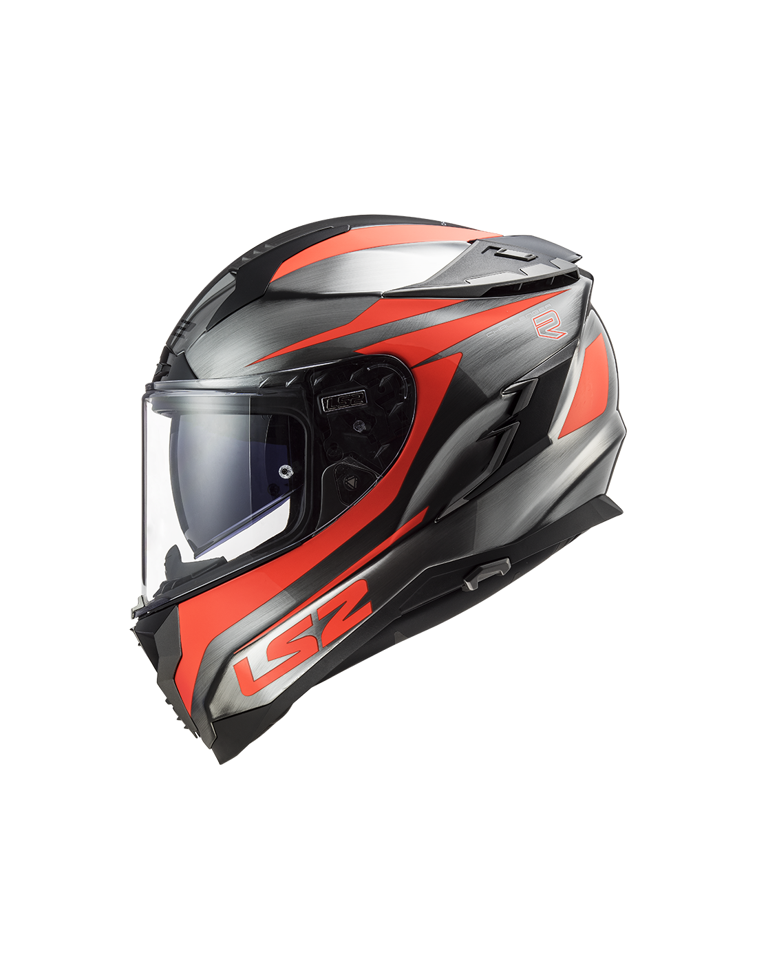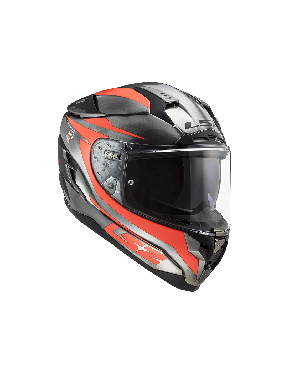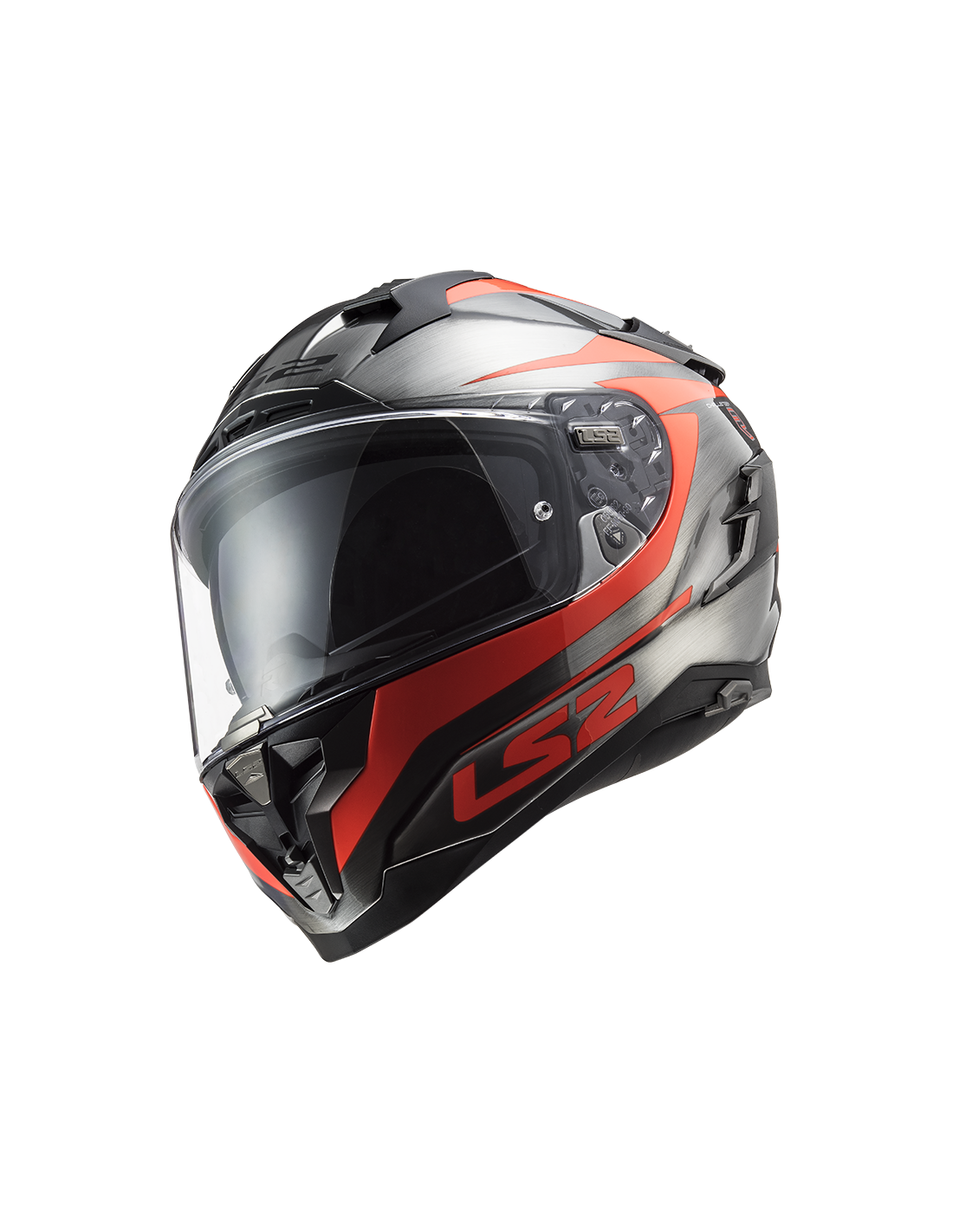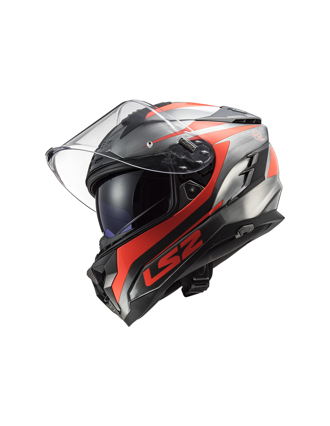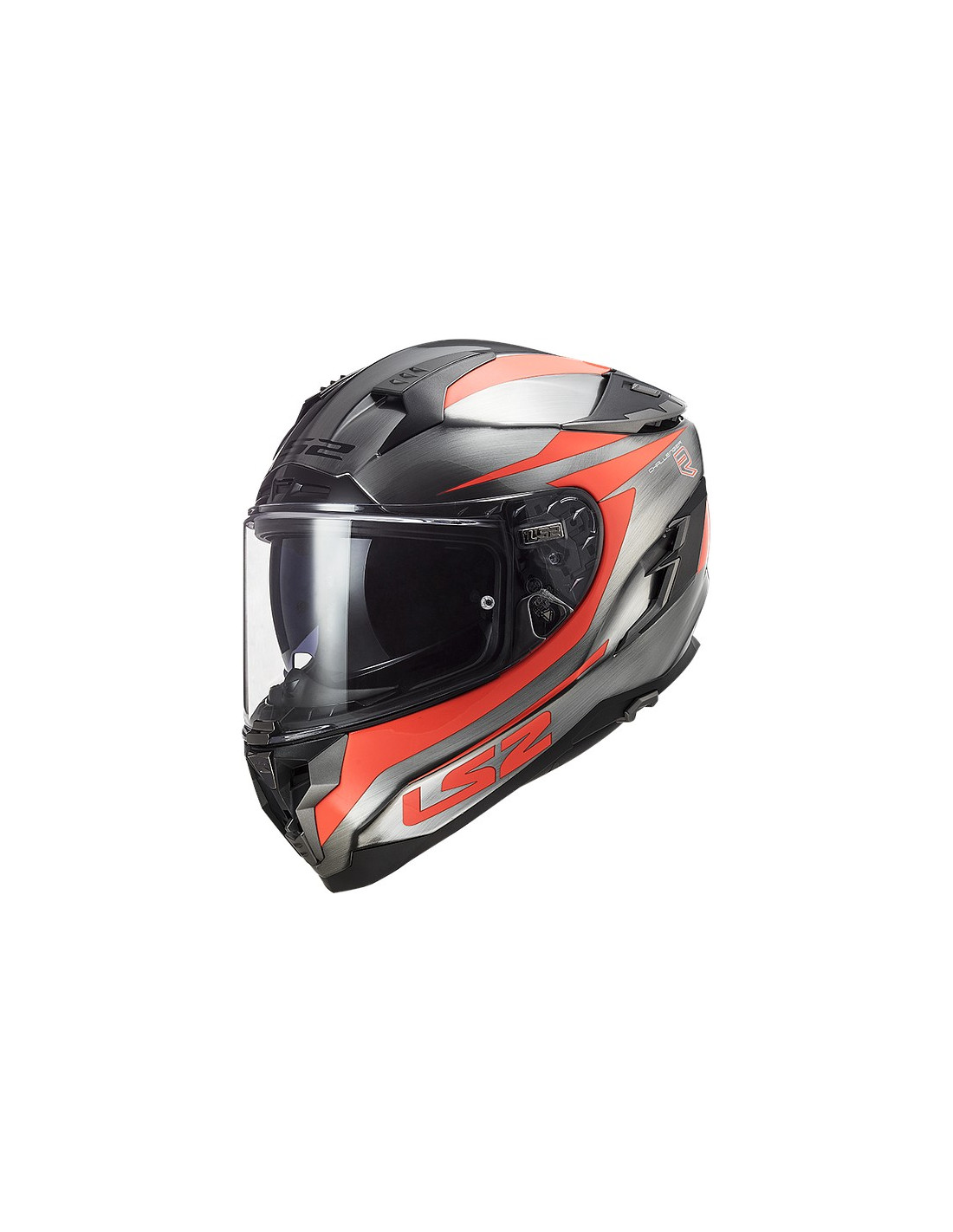 Viseira solar interna com mecanismo ergonômico. A unidade está localizada no lado esquerdo do capacete e é caracterizada pela facilidade de operação, mesmo com luvas.